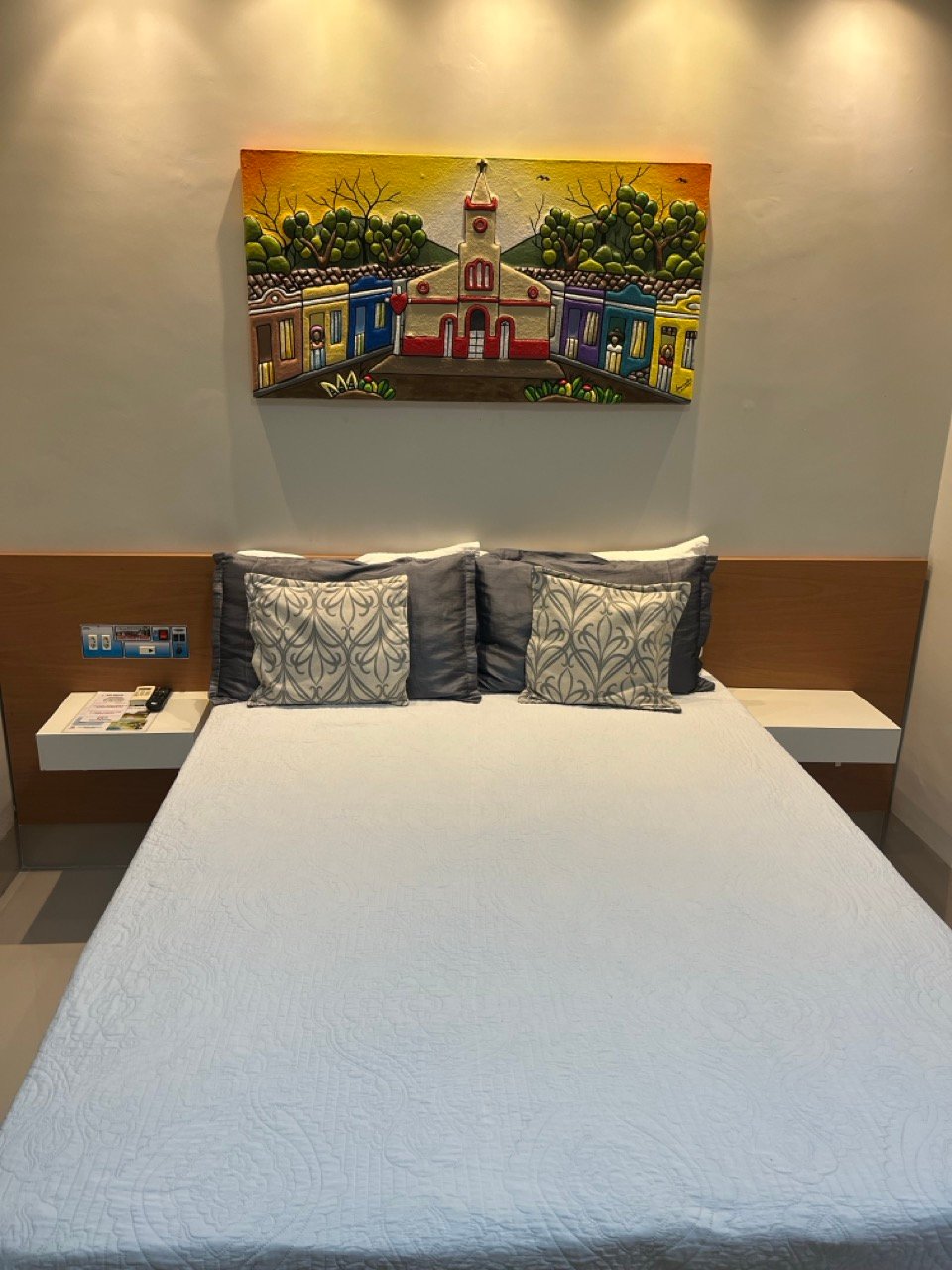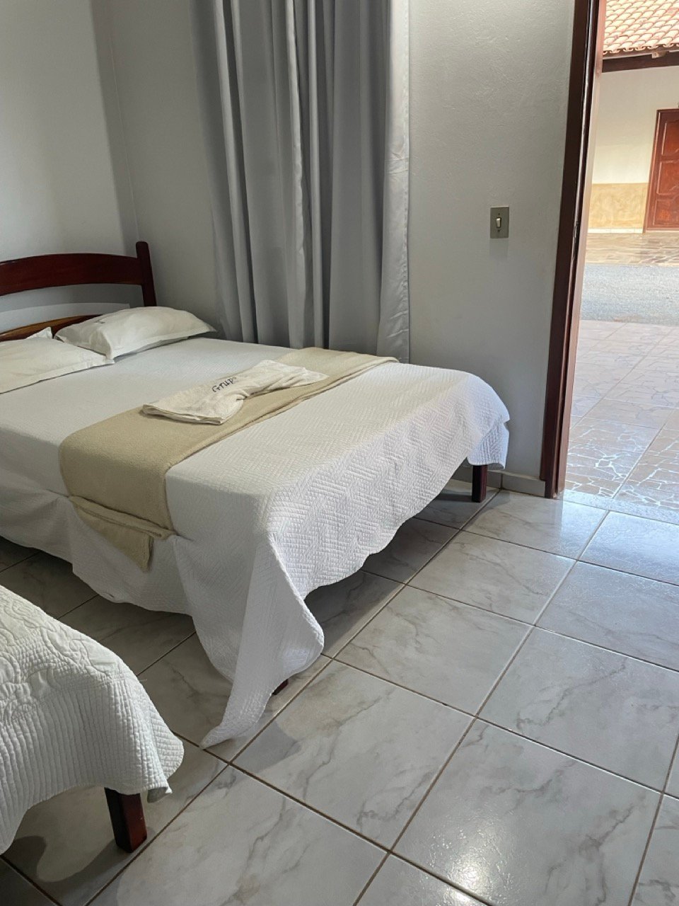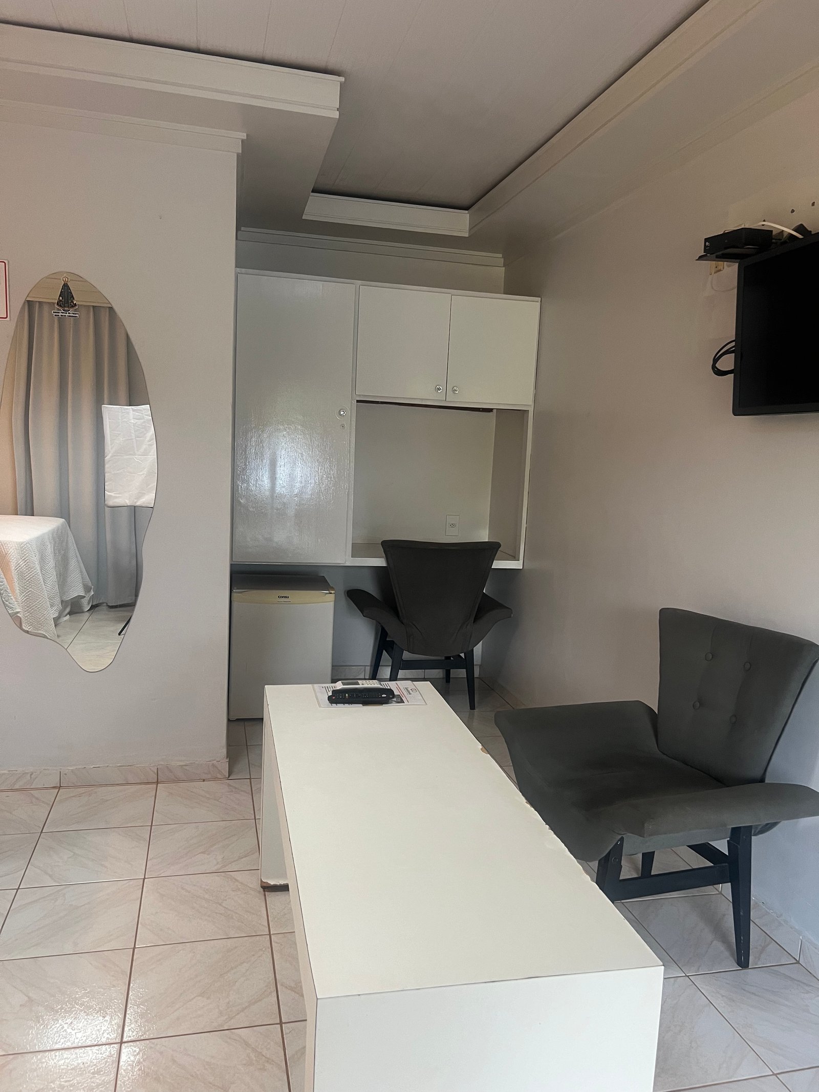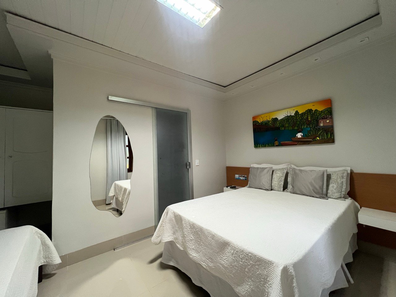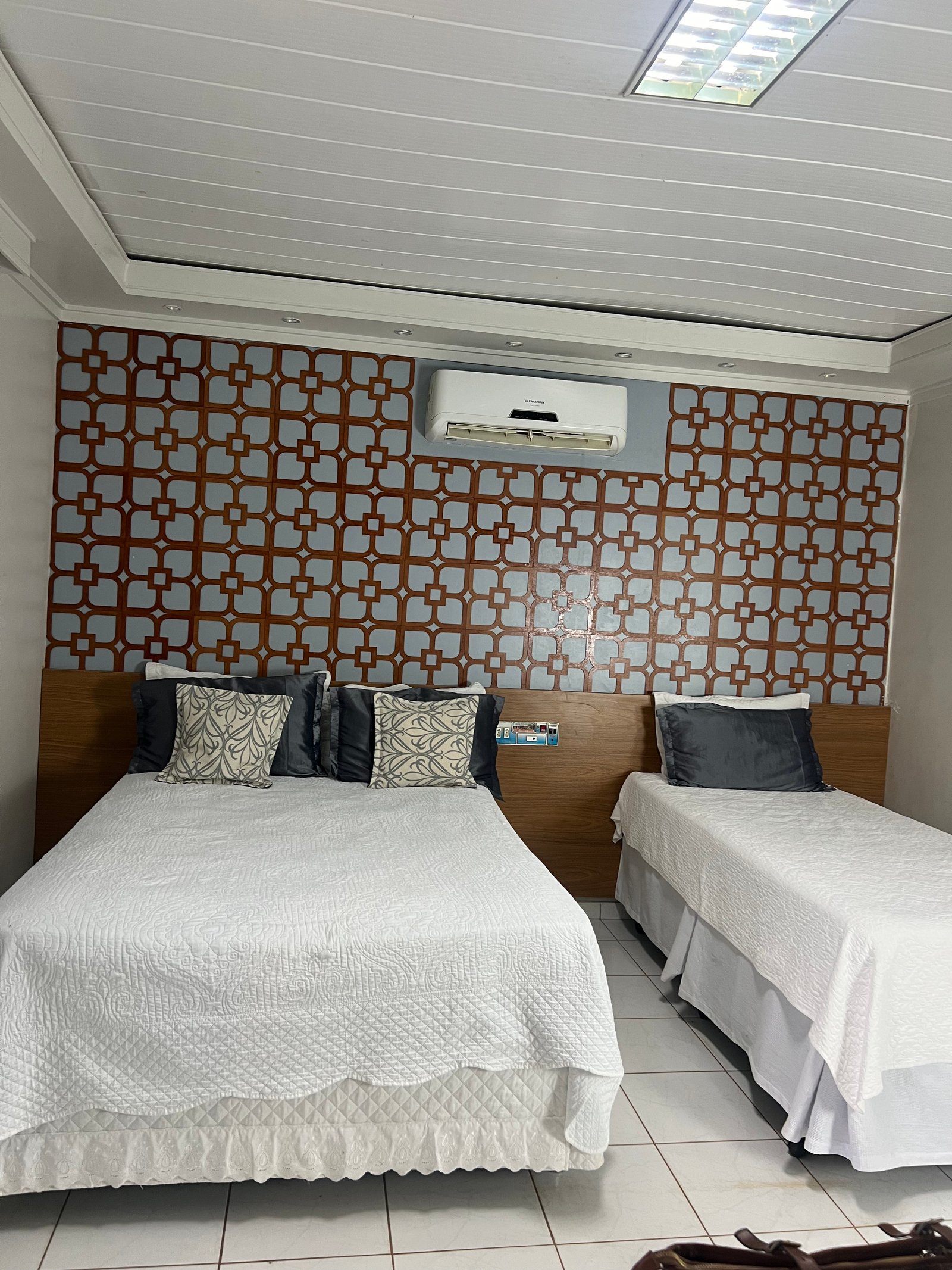 Acomodações confortáveis com 1 cama de casal, 1 cama de solteiro, TV com canais abertos, ar-condicionado, Wifi e estacionamento privativo. Perfeito para quem busca economia e praticidade.